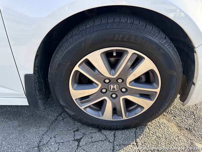 2016 Honda Odyssey Touring Elite — White Diamond Pearl exterior, Gray interior. Powered by a 3.5L V6 producing 248 hp and 250 lb-ft of torque, paired with a 6-speed automatic transmission. EPA ratings are approximately 19 MPG city and 28 MPG highway. This vehicle is in excellent overall condition.